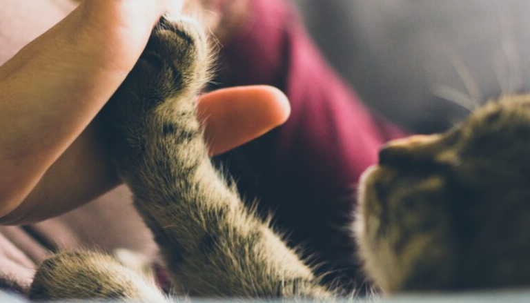 Cats have scent glands in their paws, which release pheromones when they knead. This means that every time a cat kneads a blanket, cushion, or person, they’re marking it as their territory.